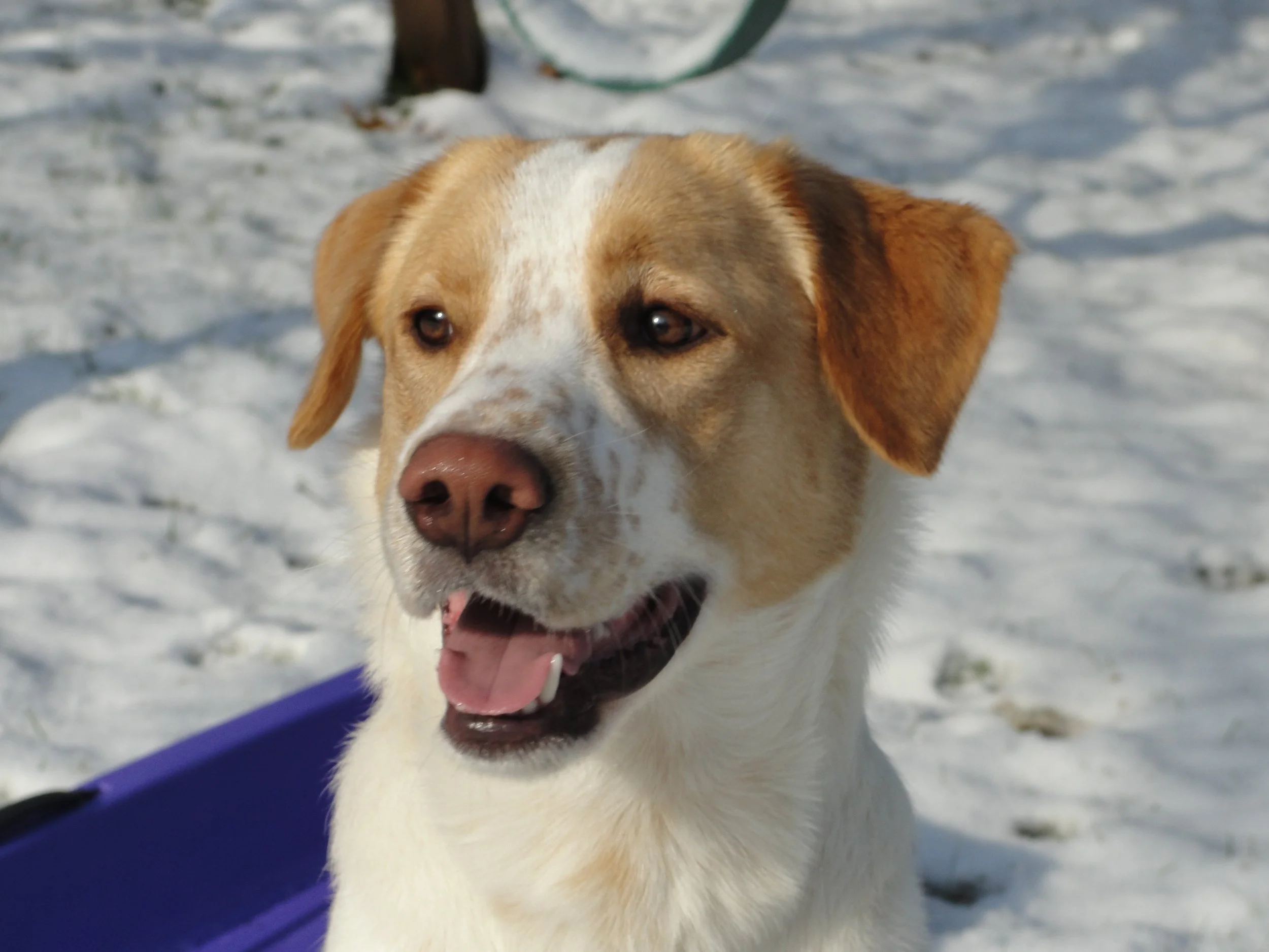 Charlotte joined our family in the summer of 2025 as a foster fail we’re so grateful for. She’s been a fun and lively addition to our dogs, always ready for a good time. On hot days, you’ll find her splashing in her doggie pool, and any time PopPop is around, she’s geared up for driveway hockey. Charlotte’s playful spirit and big heart make every day a little brighter.